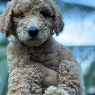 Red es un Goldendoodle Standard (estándar) de porte atlético, pelaje rojo medio y una genética sobresaliente. Su combinación Bb y ee aporta intensidad de color, excelente textura en el manto y un temperamento sereno, ideal para familias activas pero amorosas. Junto a Brownie, forma una pareja que equilibra fortaleza, docilidad y diversidad genética: una base perfecta para la nueva generación que llega este diciembre.